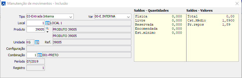 É necessário que a empresa do estoque esteja configurada para permitir vinculação manual de movimentos. Os movimentos são gravados com origem "01-Manutenção de movimentos".