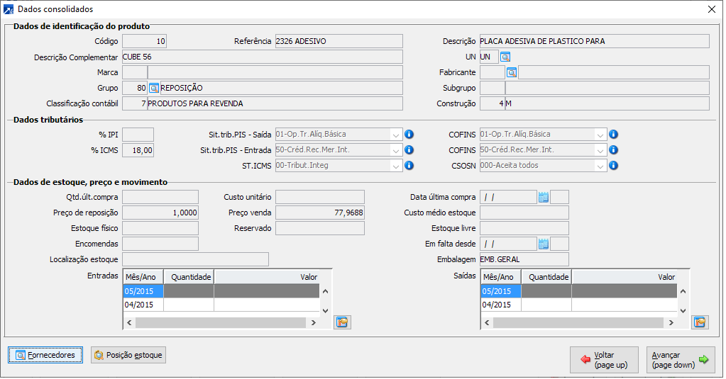 Demonstra a configuração do formação do preço de venda pela última vez que foi propagado. Podendo-se utilizar como base comparativa para o custo atual.