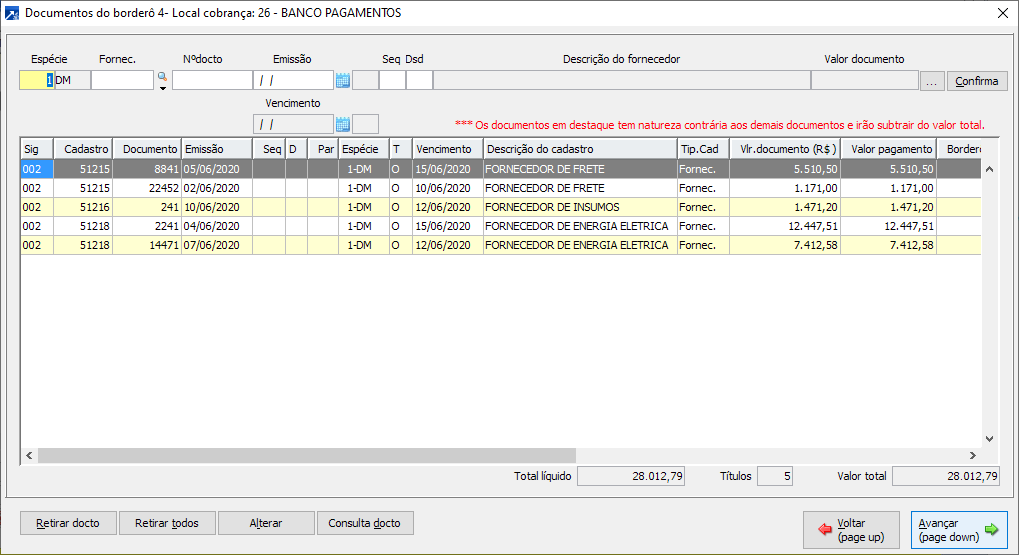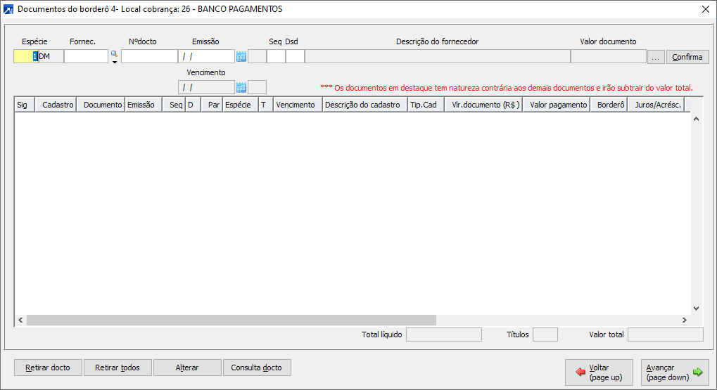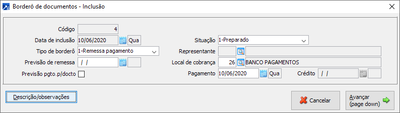 5ª Etapa: Inclusão do novo Borderô