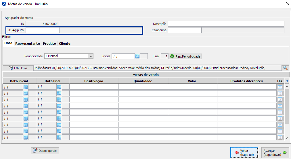 Data inicial das metas: herdará do agrupador pai