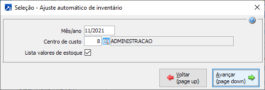 Na próxima tela será necessário informar o centro de custo, bem como, mês/ano de ajuste.