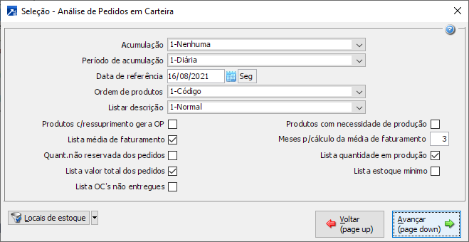 Ao avançar teremos a tela para realizar a análise de Pedidos em Carteira.