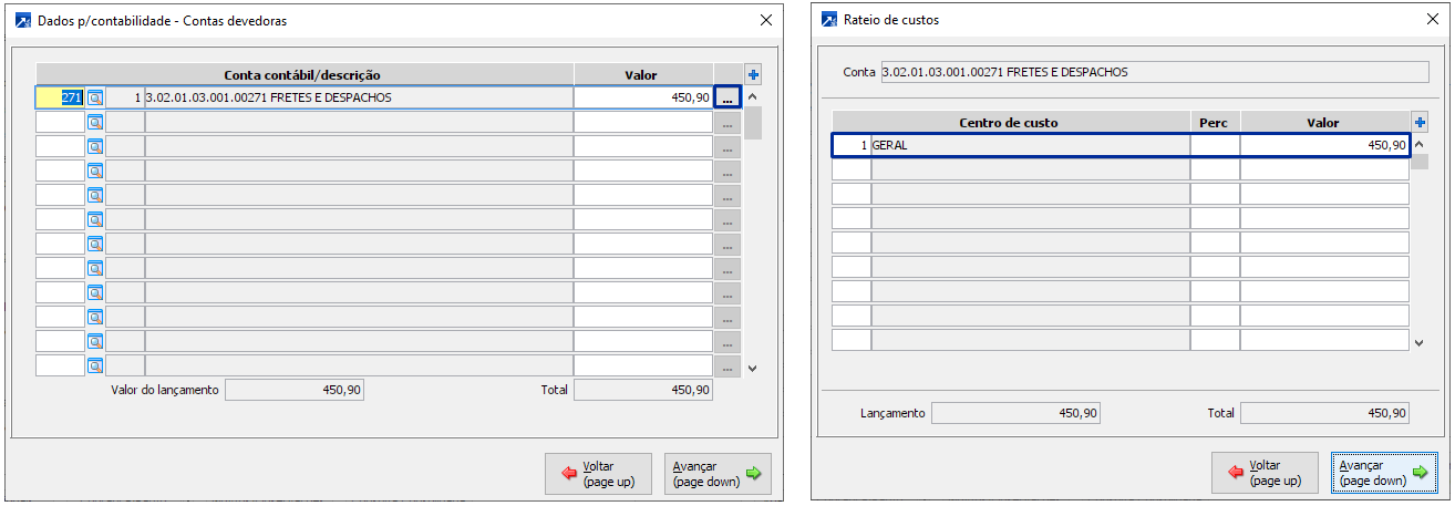 Inconsistência: Não foi informado rateio de centros de custo! Emp: 001 Cli/for: 0051215 Documento: 000000541 Dt.movto: 05/08/2021 Seq: 00 Esp: 050 Dsd: Parc: 00