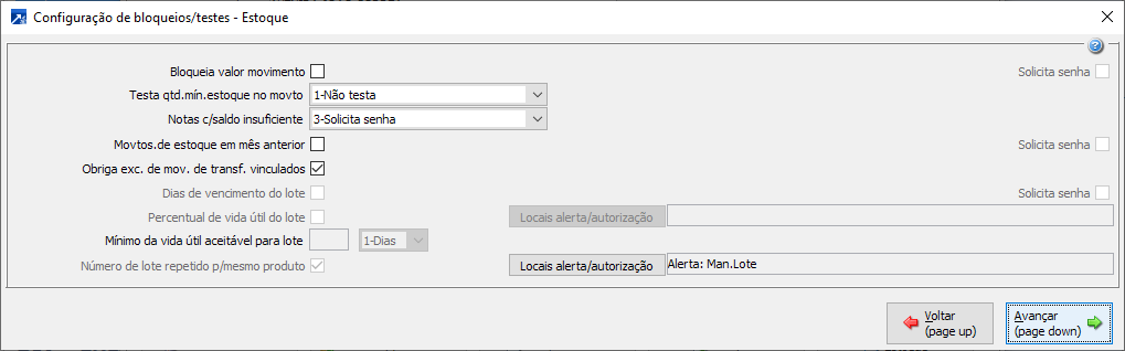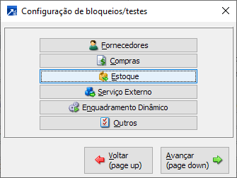 Configuração dos bloqueios e testes do módulo de controle de estoque.