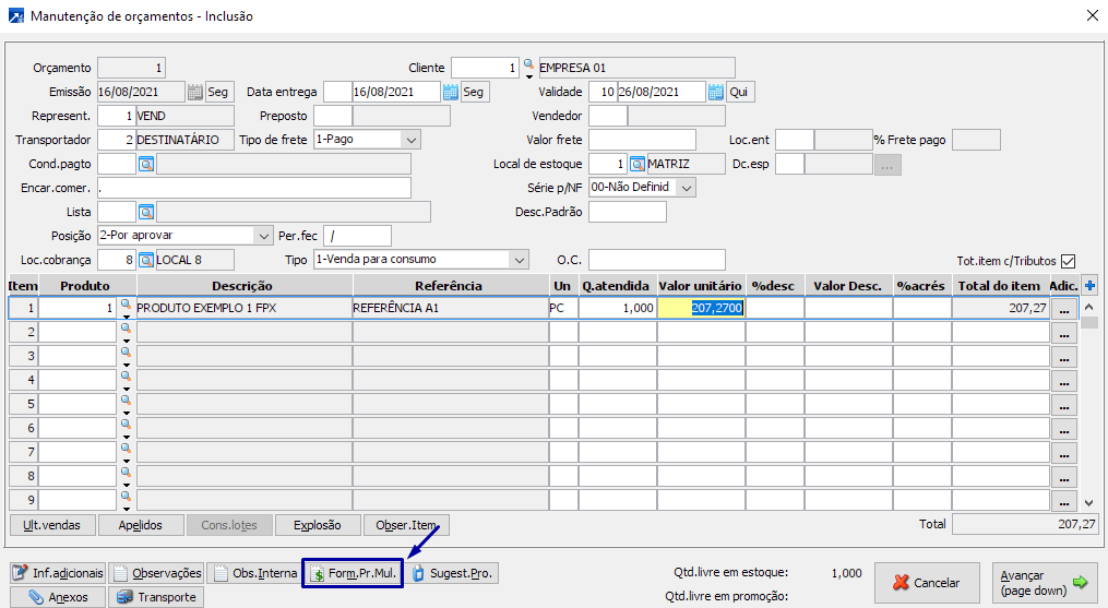 Quando marcado, será habilitado o botão <Form.Pr.Mul.> na manutenção de orçamentos e habilitará os campos "Exibe margem de sugestão" e "Exibe margem de referência" na janela de formação do preço de venda de múltiplos produtos.