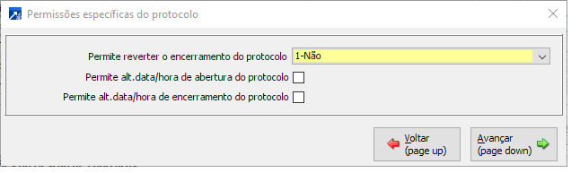 A principal opção nessa tela é de permissão de reversão de encerramento de protocolo.