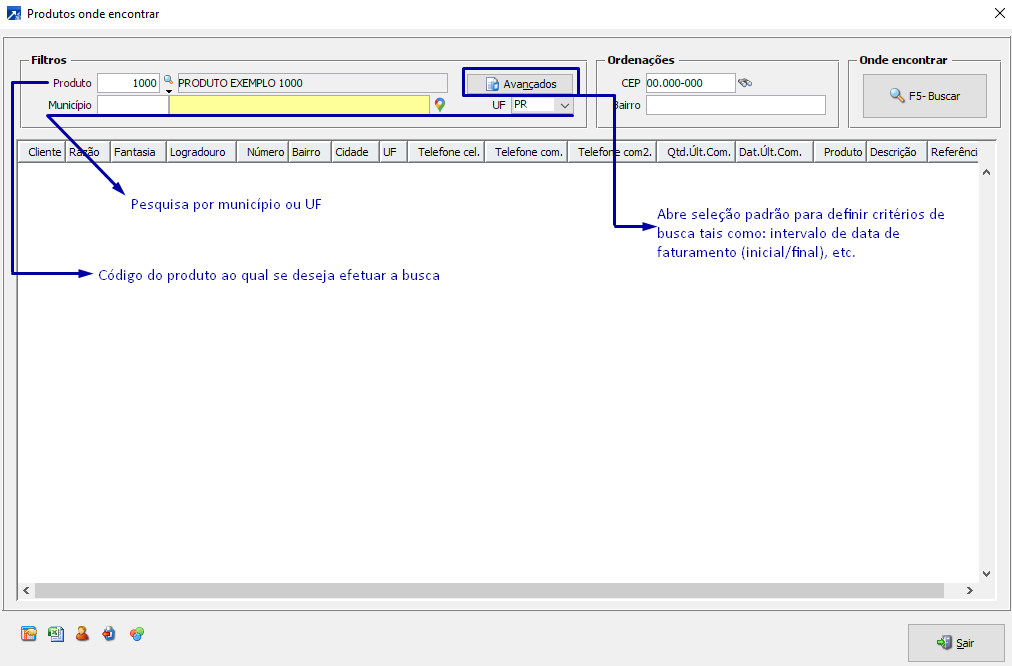 Abre um grid onde é possível localizar clientes que já compraram determinado produto da empresa.