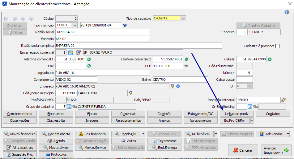 Abre linhas de produtos que podem ser de interesse específico deste cadastro que está sendo utilizado no contato.