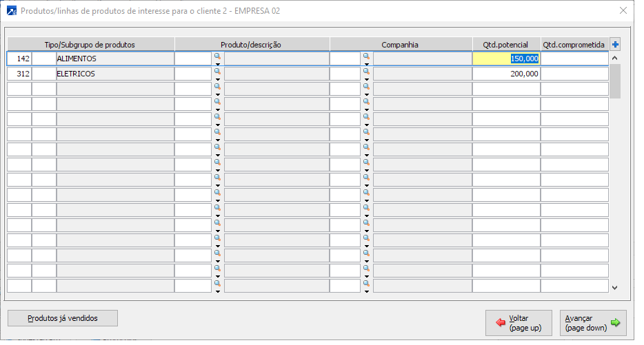 É possível inclusive informar a quantidade potencial de compra do produto/linha para o cadastro
