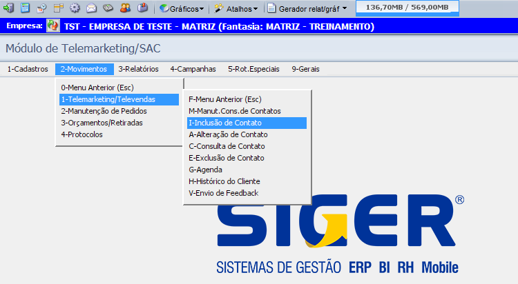 Existem a nível básico duas formas de cadastrar um contato do módulo telemarketing no SIGER®.
