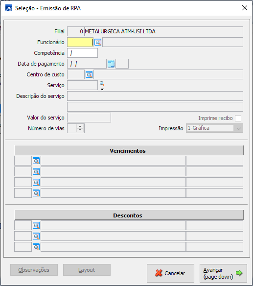 A RPA poderá ser listada novamente no MENU 3.8-R, e será listado na folha MENU 4.1-L e será listado nos totais da folha MENU 4.1-T, onde será calculado os encargos, quando a empresa for GERAL.