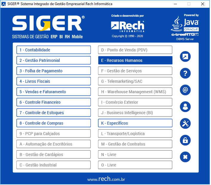 O módulo de Recursos Humanos do SIGER® é composto por vários módulos/menus, e neste manual vamos detalhar um pouco as funcionalidades de cada um.