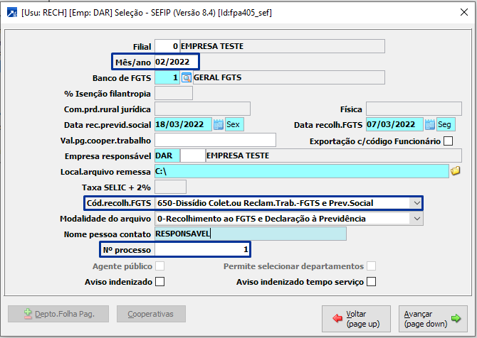 Obs.: após calcular a folha complementar é necessário gerar o arquivo SEFIP MENU 4.5-S com código de recolhimento 650 para recolher o FGTS, e o INSS será recolhido junto na DCTFWEB da folha mensal. Ao gerar o arquivo SEFIP será necessário informar a competência e o número do processo informando no cálculo da folha complementar.