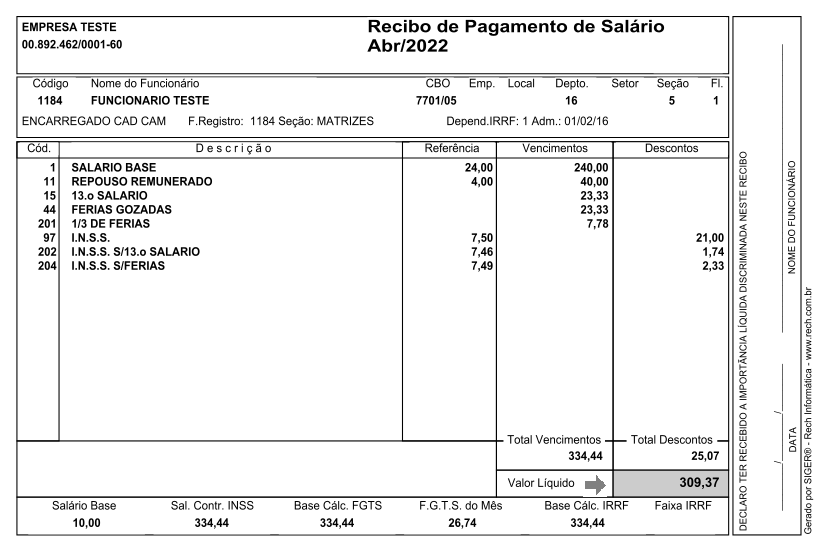 Lembrando que o funcionário, poderá ter mais de uma convocação no mês, a cada cálculo da convocação será gerado um recibo de pagamento, SIGER® irá apurar o INSS e IRRF considerando todos os pagamentos da competência, sendo que o IRRF é pelo regime caixa, ou seja, pela data do pagamento.