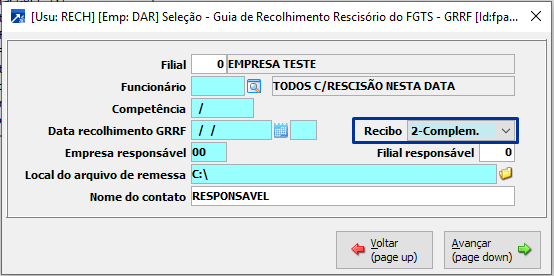 - O FGTS da folha complementar e da rescisão complementar, deve ser recolhido através da GRRF complementar MENU 4.5-B o INSS será recolhido pela DCTFWEB mensal.
