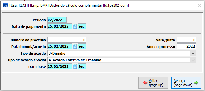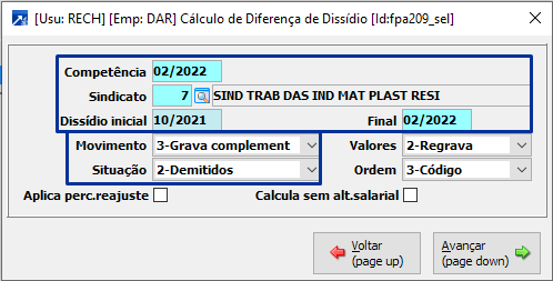 Exemplo 1: apurar as diferenças de dissídio/acordo para ser pago na rescisão complementar.