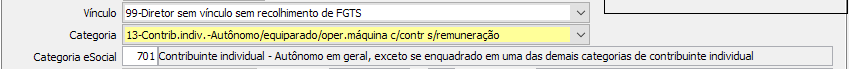 Para calcular a RPA MENU 3.8-L, é necessário que o autônomo esteja cadastrado no SIGER® com o vínculo 99, categoria do 13 ao 18 e categoria eSocial 701, MENU 1.8-I e usar o evento padrão do SIGER® código 70-Honorários para calculo, desta forma o SIGER® irá calcular automaticamente o INSS e IRRF.