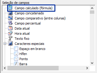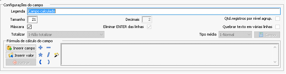 Como alguns campos de relatórios do SIGER® são calculados no processamento e não são gravados diretamente nos arquivos, o gerador possibilita que sejam feitos cálculos. Dentre as opções de campo, há o Campo Calculado.