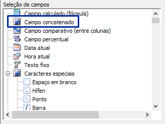 Usado para listar vários campos na mesma coluna (célula), permitindo inserir campos e textos fixos concatenados.