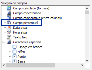 Importante: O campo base deve estar sendo totalizado, ou não poderá ser inserido campo percentual.
