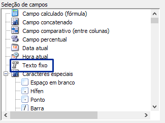 Usado para inserir um texto fixo, onde o usuário pode digitar o que desejar. Bastante usado para montar layouts de exportação de arquivos, para suprir a necessidade de campos que não existem em nosso banco de dados.