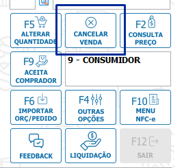 Para cancelar a venda corrente, basta acessar a função "Cancelar venda"com uma venda iniciada.