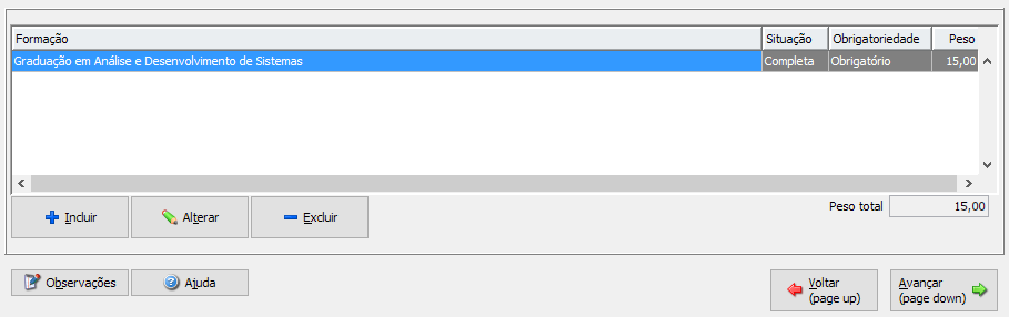 Observação importante: se optares pelos pesos a soma de todos os pesos informados desde a aba comptências até a aba outros requisitos, não pode passar de 100 pontos.