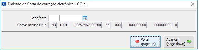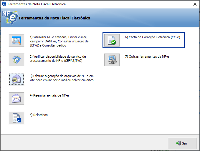 Utilizado para emitir uma nova CC-e. Irá solicitar a NF-e na qual será vinculada a carta, e em seguida aceitará o texto da CC-e.