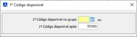 Na inclusão, quando foco está nesse campo, é possível utilizar essa função para buscar 1º código disponível por grupo de cadastro OU 1º código disponível a partir de um código em específico.