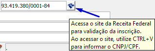 Ao clicar no ícone da Receita Federal abre o site para consulta, com CNPJ copiado. Basta utilizar CTRL+V para colar o CPF/CNPJ no site.