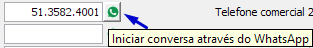 Telefone comercial - ícone ao lado permite iniciar uma conversa via WhastApp.