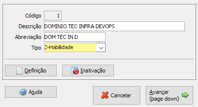 No botão <Definição> deve ser colocado uma breve descrição do que representa a competência cadastrada.