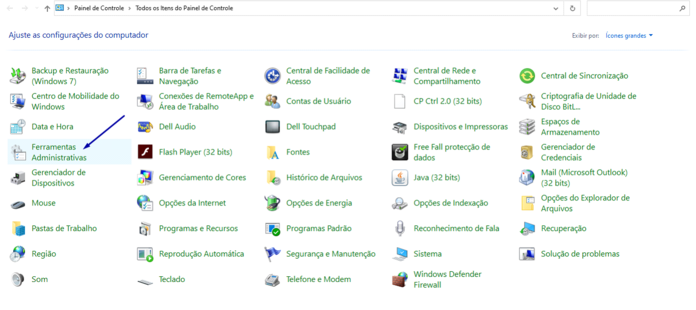 b) No Painel de Controle, clique duas vezes em Ferramentas Administrativas.