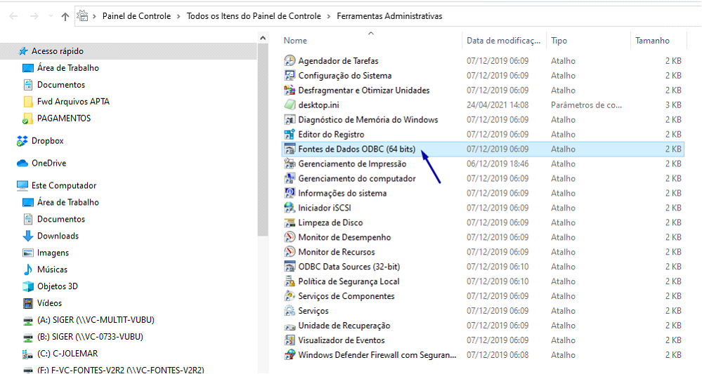 c) Na caixa de diálogo Ferramentas Administrativas, clique duas vezes em Fontes de Dados (ODBC).