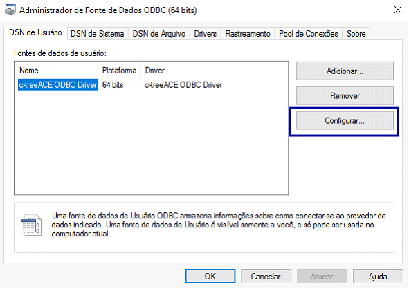 É necessária instalação do driver ODBC do C-tree para realização da comunicação.
