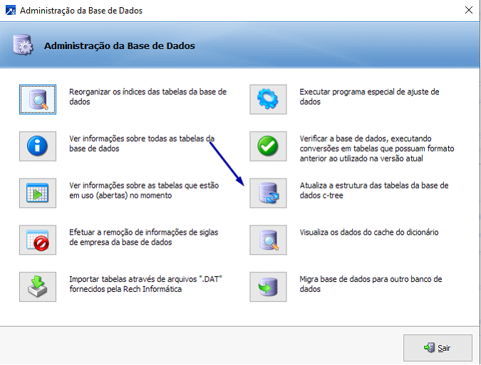 Clicar em <atualiza estrutura das tabelas da base de dados c-tree>