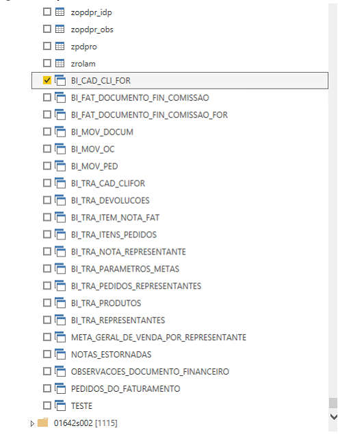 Marcar as tabelas que serão utilizadas na montagem das views para exportação dos dados no Power BI ®.