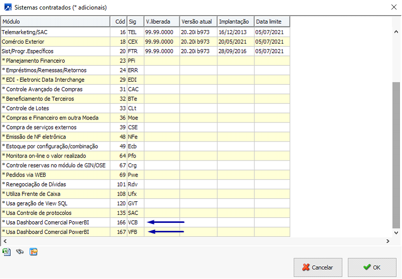 Após contratação do adicional para geração de Views a serem utilizadas no Power BI é recomendada atualização do SIGER®.