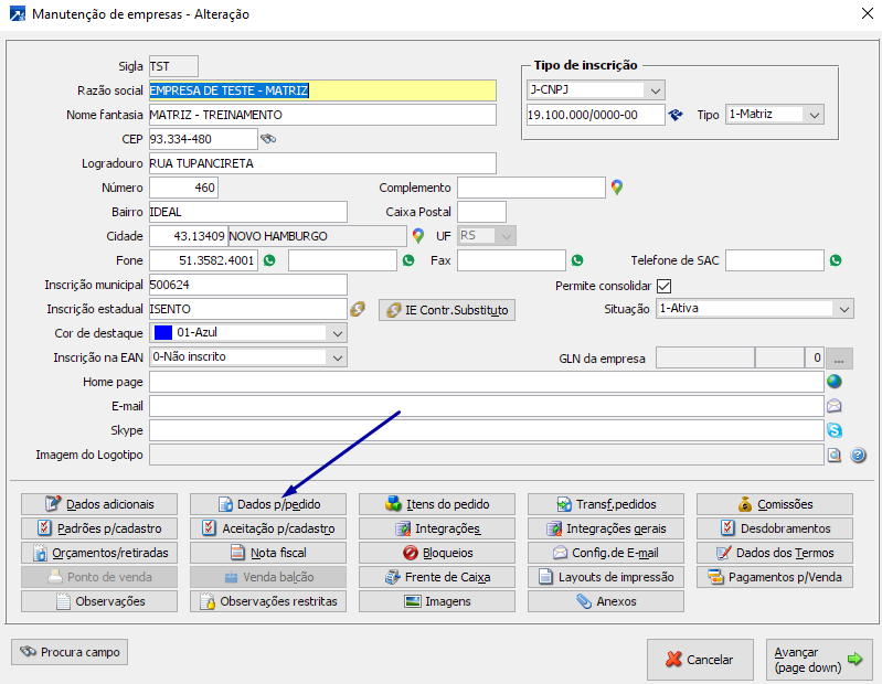 Situação prática: Supondo que foi definido para o sistema dar "carga" automática do custo do item do pedido considerando o "custo de aquisição" vinculado ao cadastro do produto.