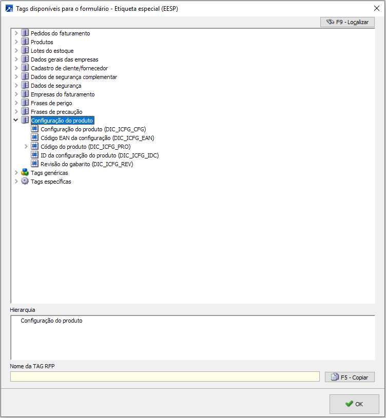 Botão <Tags>: irá exibir a treeview com todas as tags disponíveis para aquele formulário: