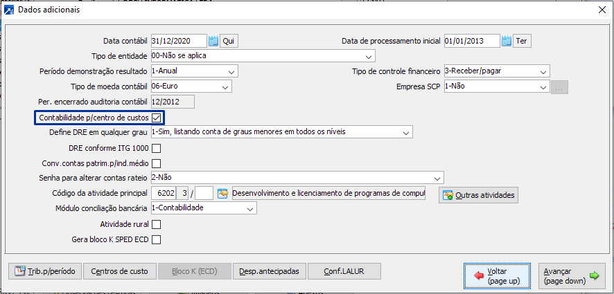 Informar no cadastro da empresa, menu CTB 1.2-A, botão <Dados Adicionais> a opção "Contabilidade p/centro de custos".