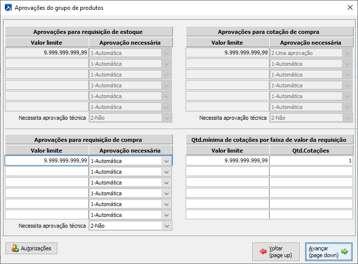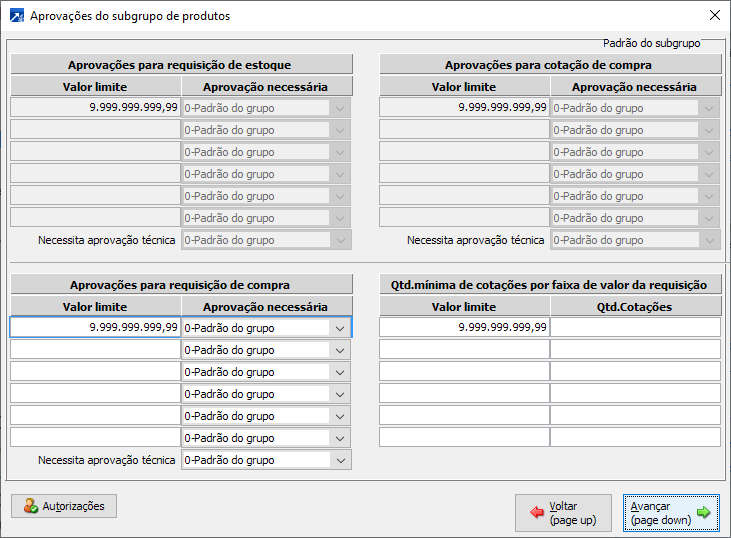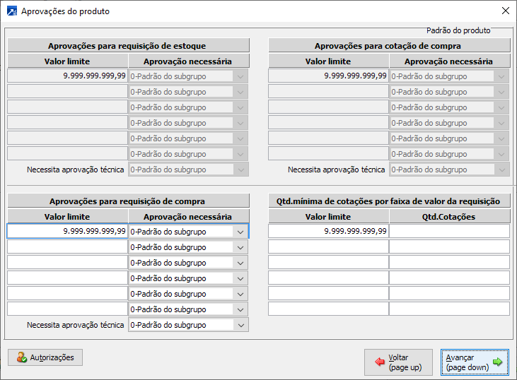Para todos os pontos (produto, subgrupo e grupo) há a tela de aprovações: + Saiba mais