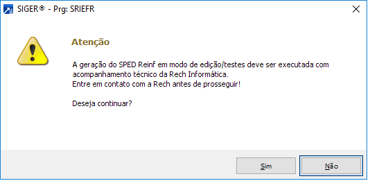Opção criada para a fase inicial da empresa, que queira efetuar testes de envio e retorno dos arquivos REINF.