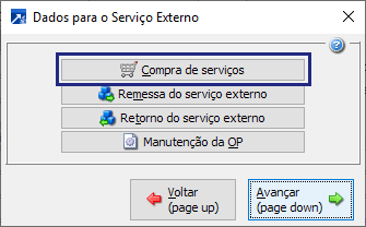 Se desmarcado, a ordem de compra de serviço externo é gerada conforme o parâmetro "Faz emissão de OC".