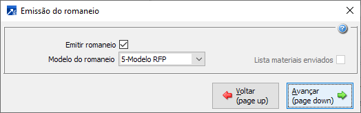 Parâmetros para emissão do romaneio.