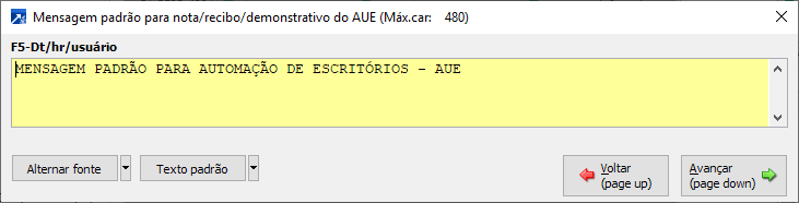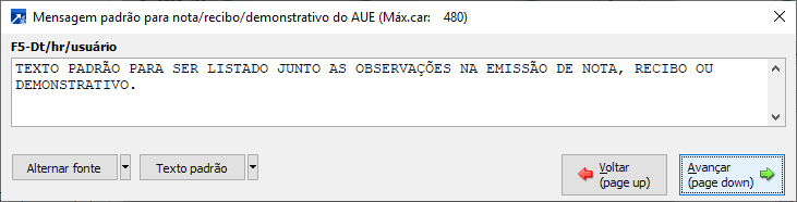Nessa janela pode ser informado o texto manualmente, conforme exemplo acima, ou texto padrão configurado no botão <Texto padrão>.