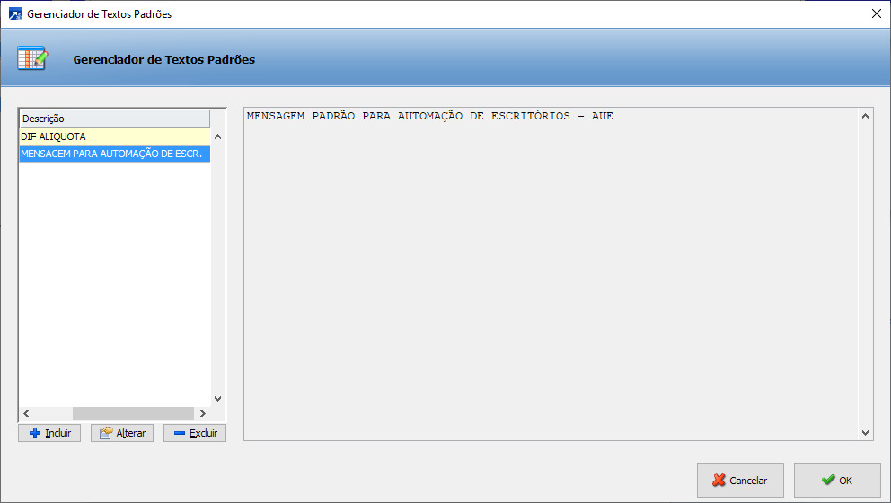 Listar mensagem/carimbo padrão
