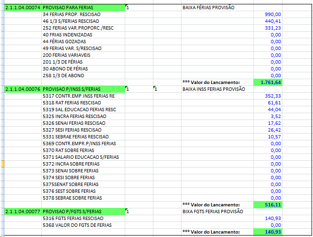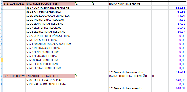 2- Quando ocorrer pagamento de férias normais ou pagas em rescisão, deve ser feito o lançamento dos pagamentos na conta de provisão do passivo a débito e os encargos de INSS e FGTS no passivo a débito e na despesa a crédito.
