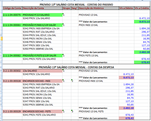 Neste exemplo a baixo, será demonstrado a contabilização da provisão por cota mensal referente a 13º SALÁRIO.