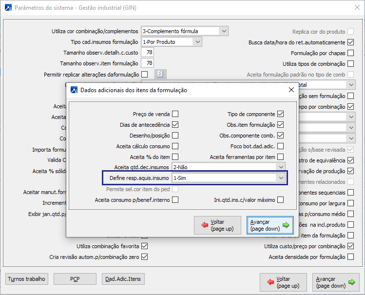 Observação: o botão será habilitado quando parâmetro "Define Resp.aquis.insumo" no menu 1.1-P, botão <Gestão industrical>, botão <Dad.adic.Itens>, estiver com opção "1-Sim".